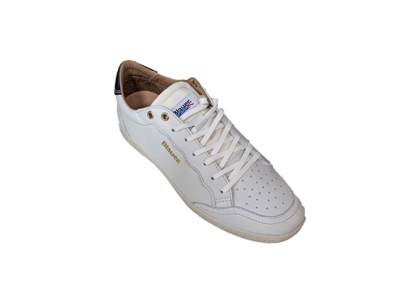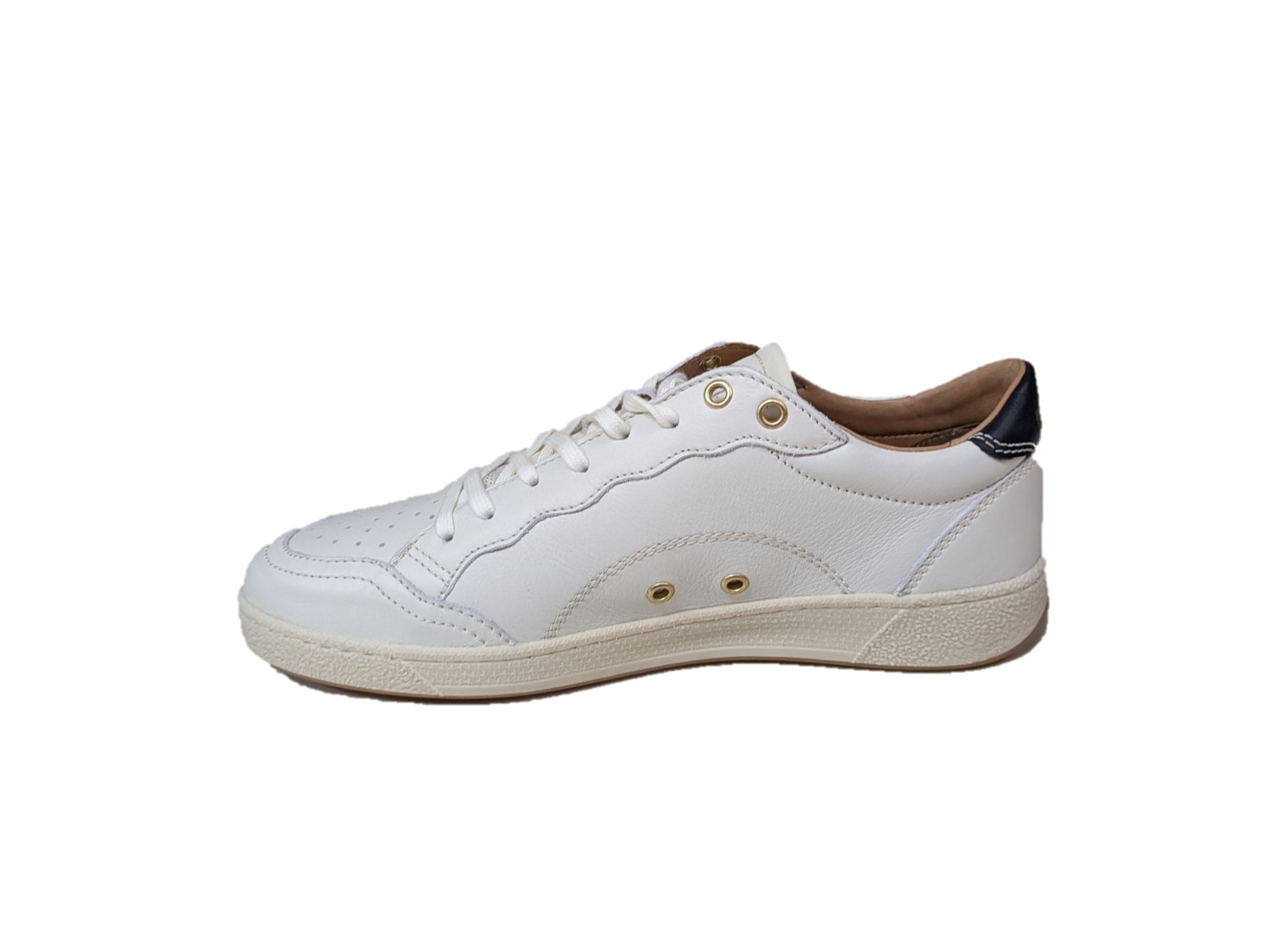 Sneaker in pelle colore bianco, suola in gomma, sottopiede estraibile.