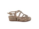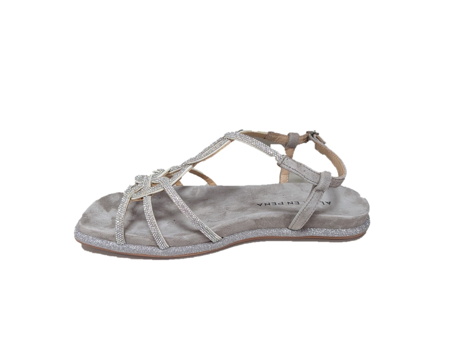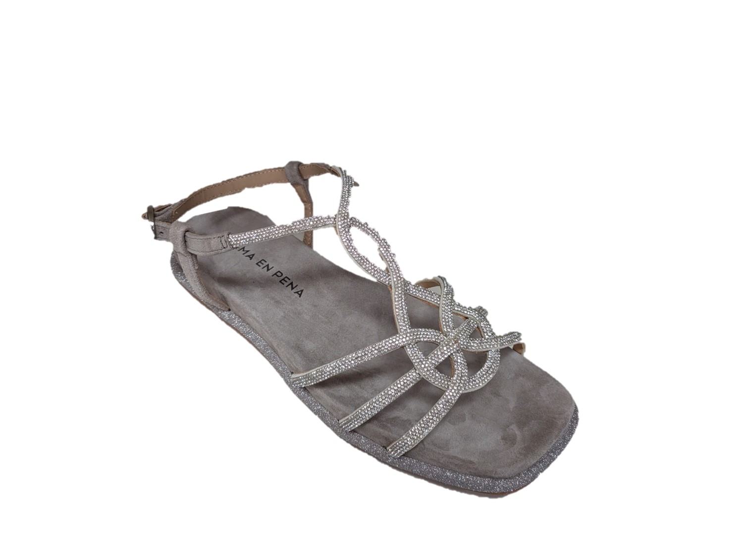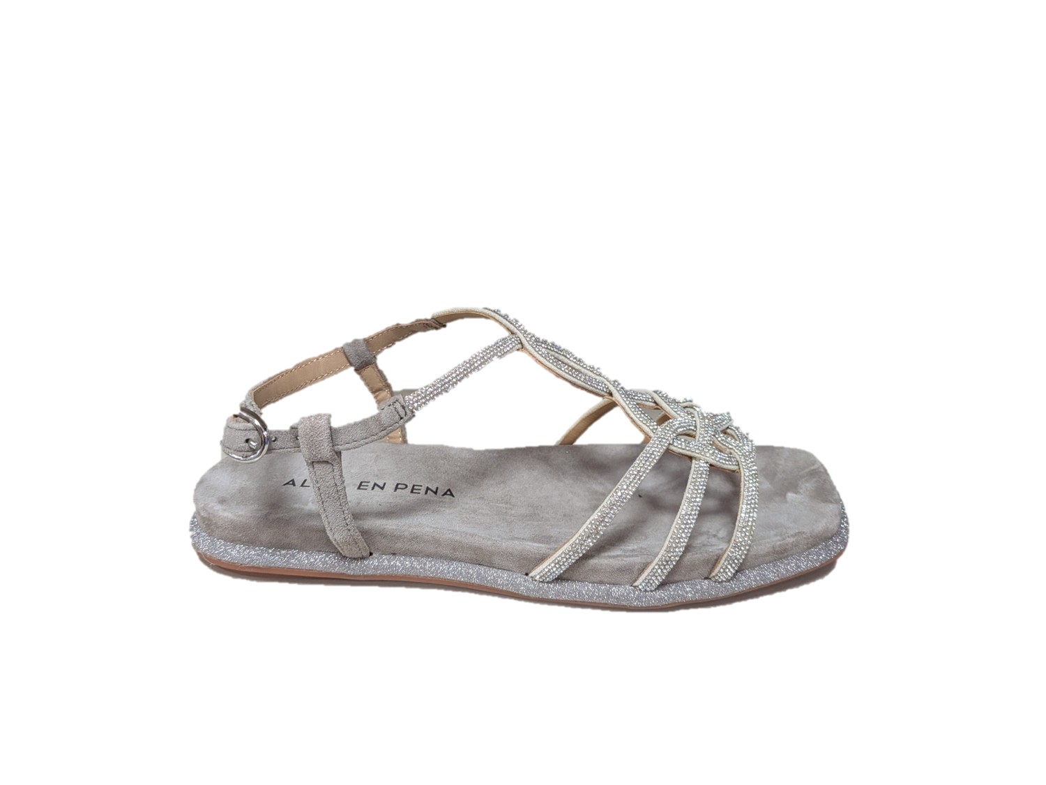 Sandalo con tomaia in pelle scamosciata con strass, suola in gomma