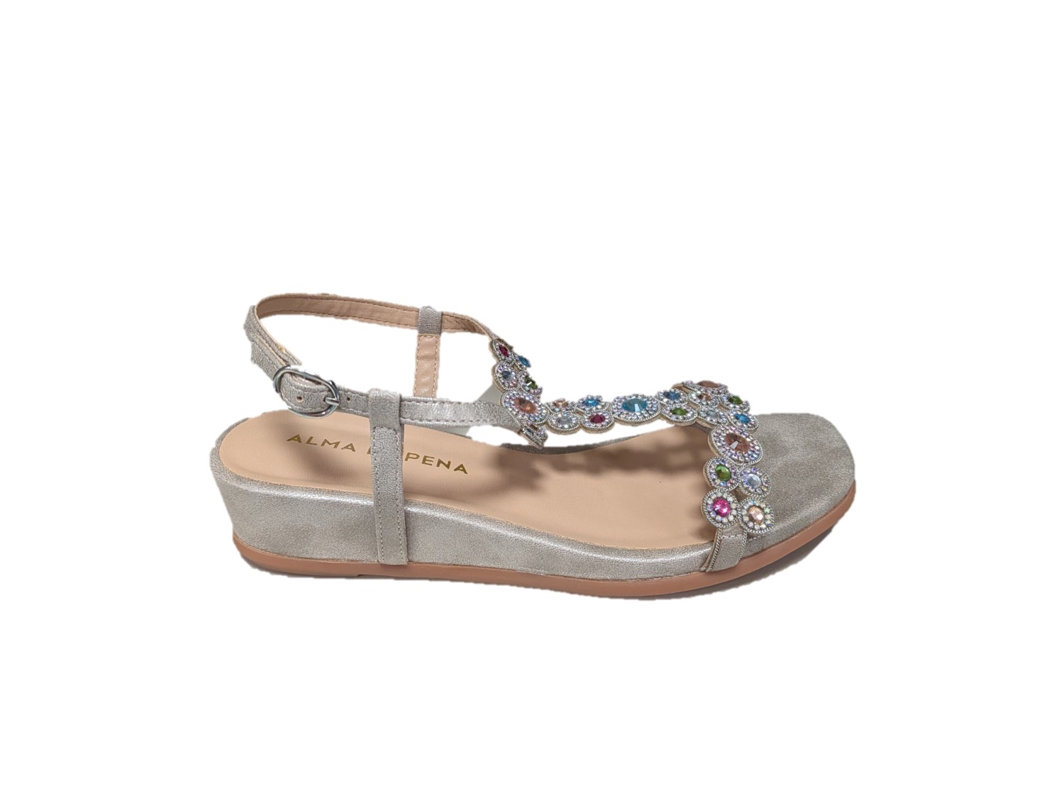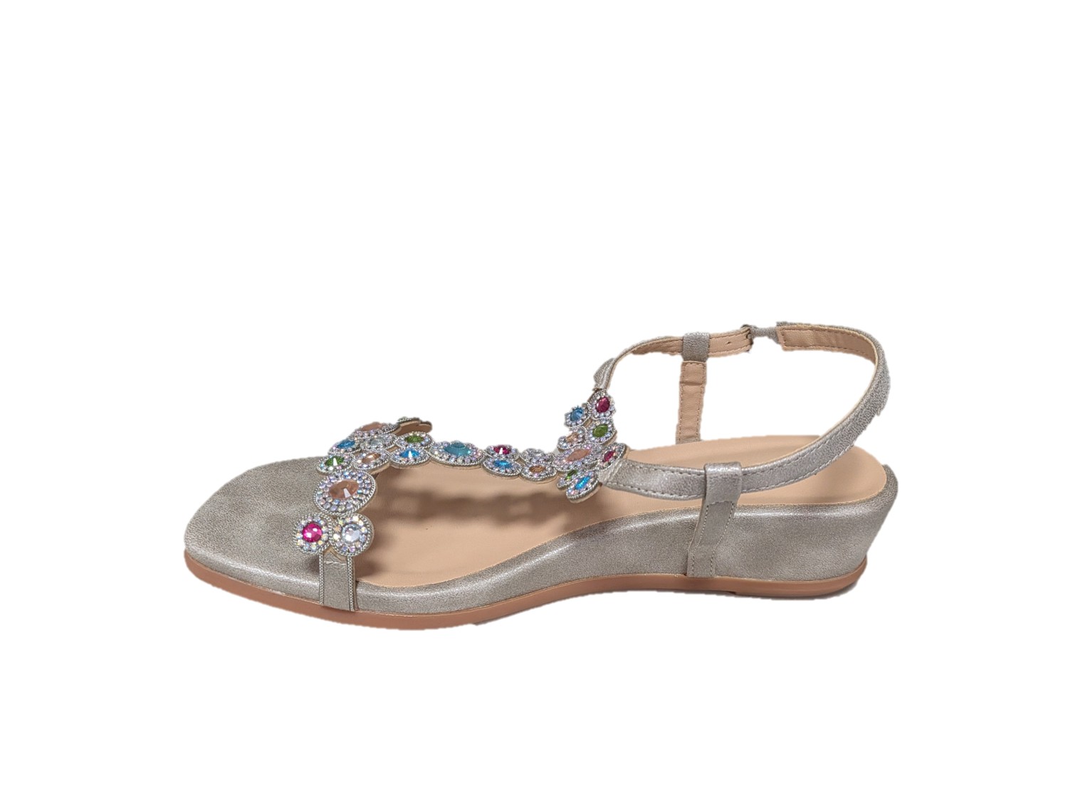 Sandali colore bronzo, zeppa di 4cm, suola in gomma