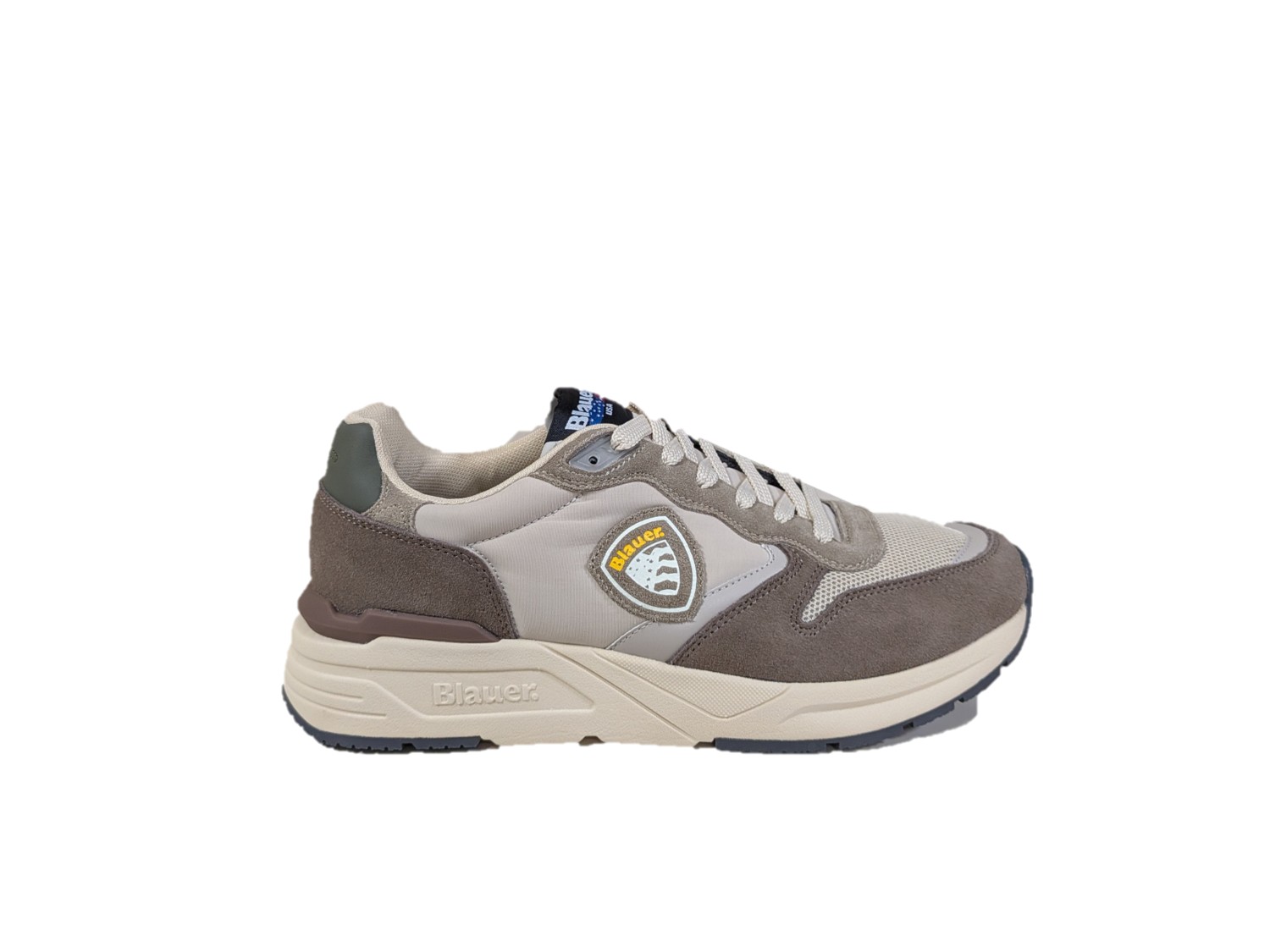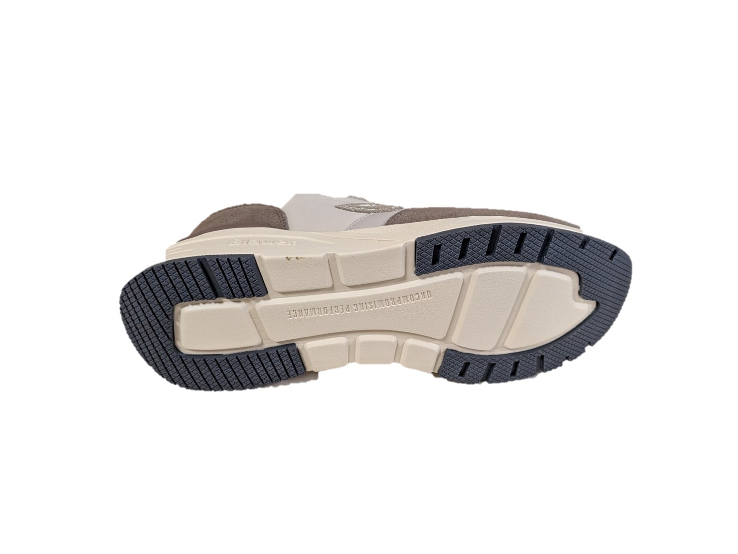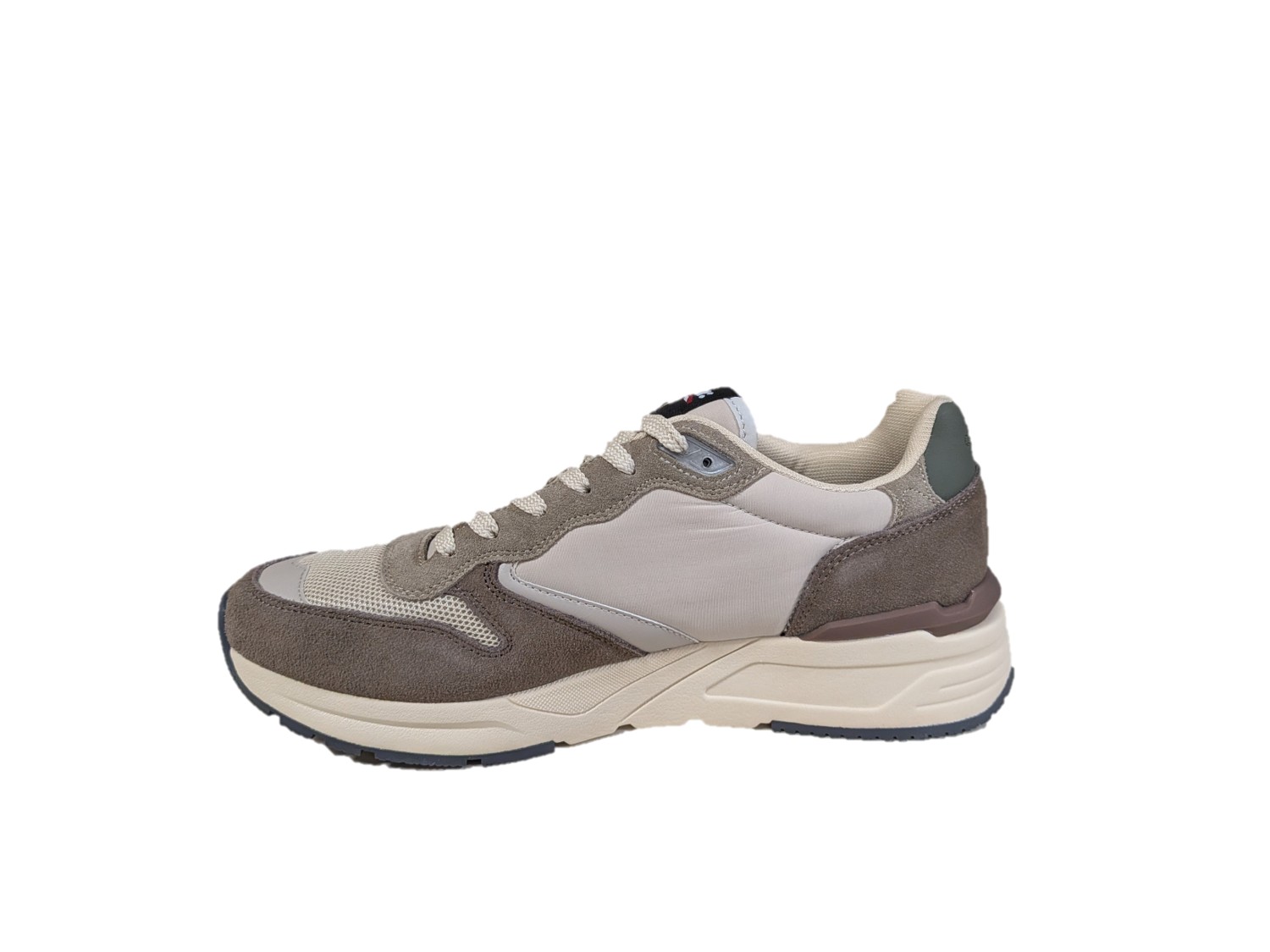 Sneakers in pelle scamosciata e tessuto colore taupe, suola in gomma, fodera in tessuto