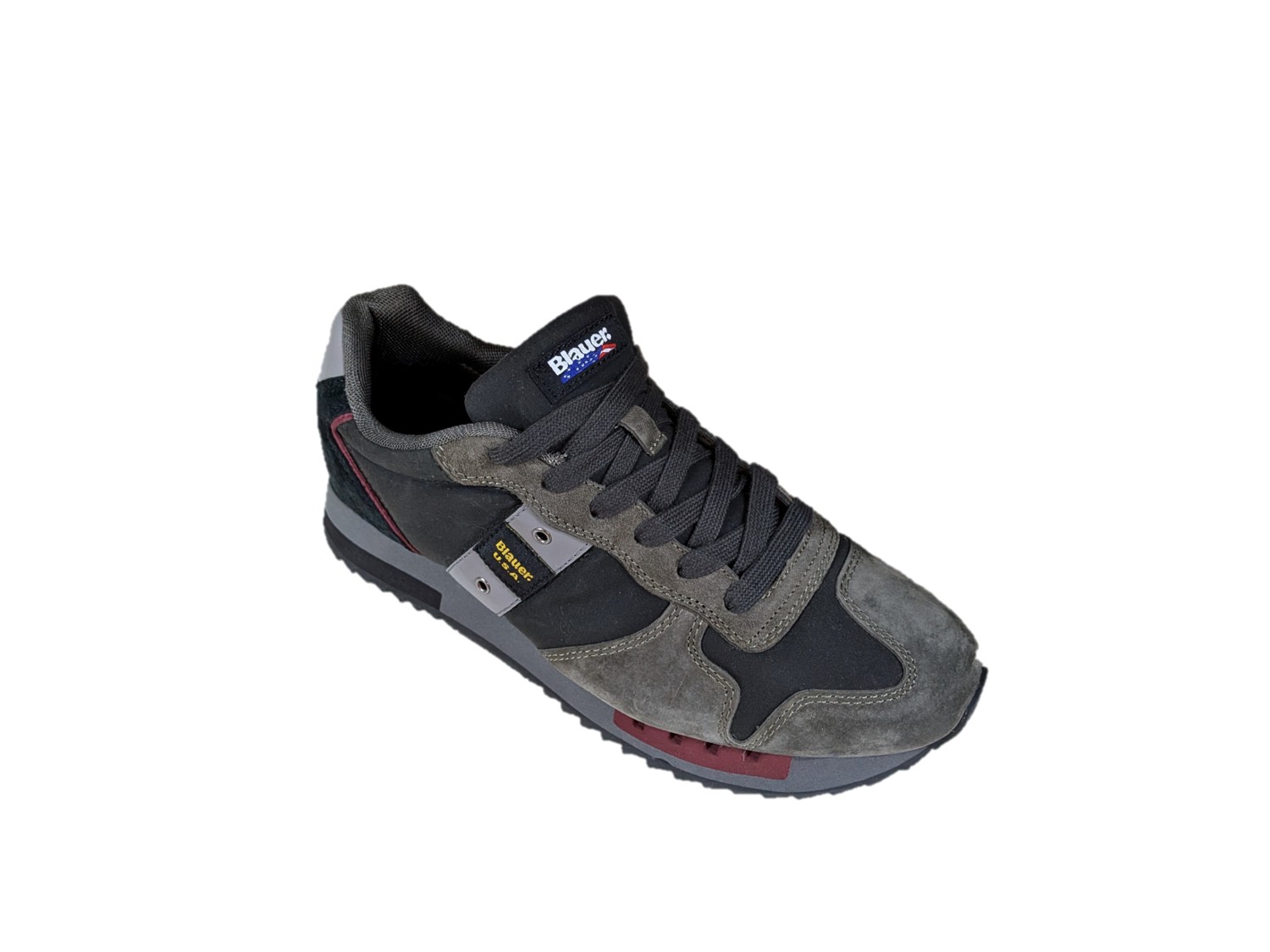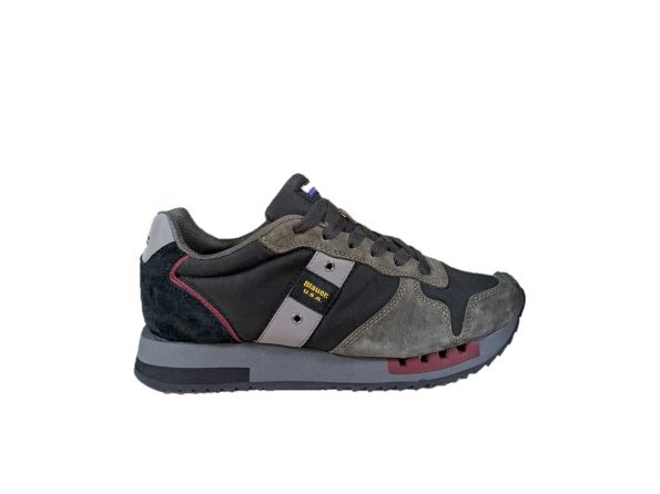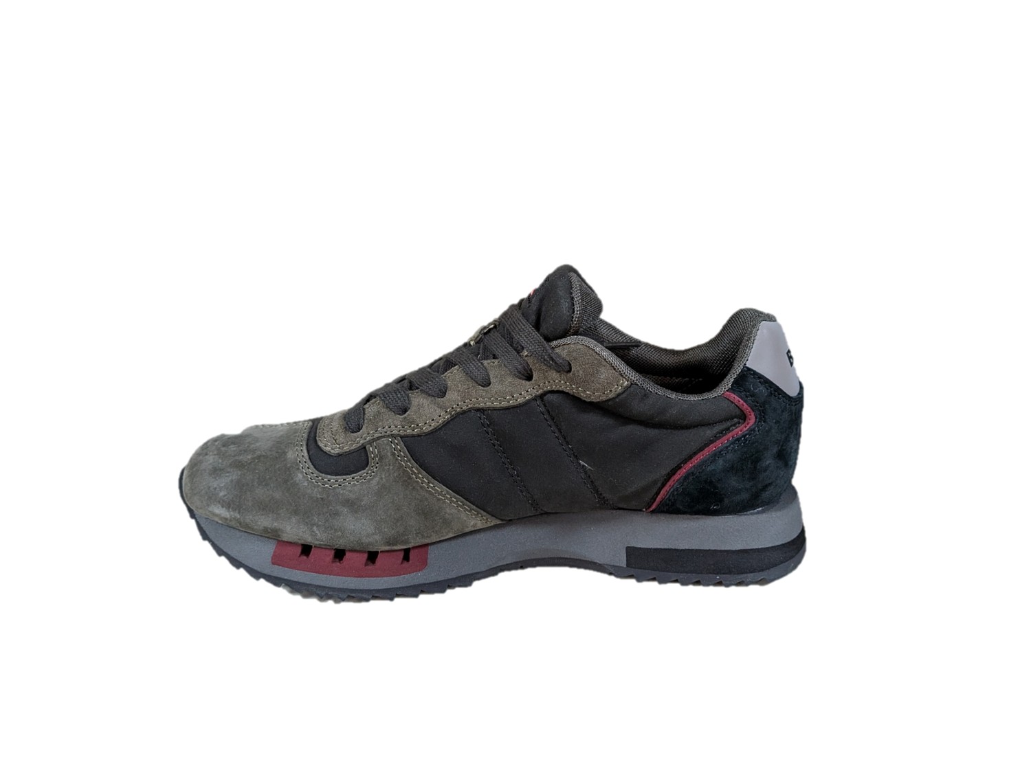 Sneakers in pelle scamosciata e tessuto colori black military, suola in gomma, fodera in tessuto