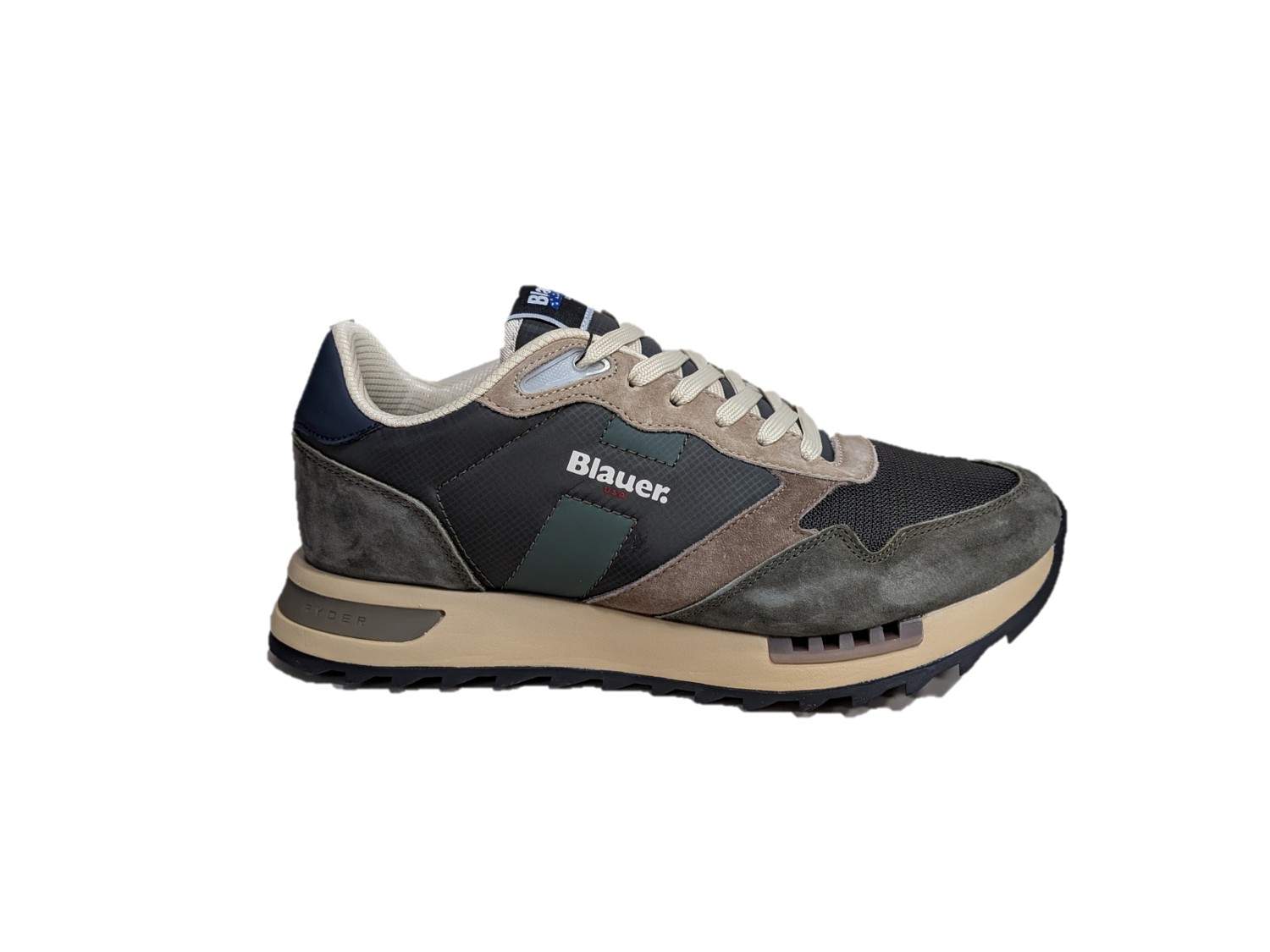 La tomaia combina materiali diversi, con un effetto cromatico equilibrato, il logo Blauer è visibile lateralmente e sulla linguetta. La suola in eva con elementi a contrasto, è seghettata per un look dinamico. Il battistrada in gomma garantisce aderenza e durata. Ideali per un outfit casual e curato.