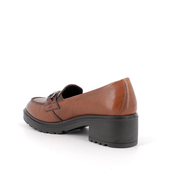 Mocassino in pelle, con tacco. Elastici per facilitare la calzata. Vaschetta e morsetto ornamentale. Adatto ad ogni occasione, con gonna o pantaloni. Sottopiede estraibile in pelle