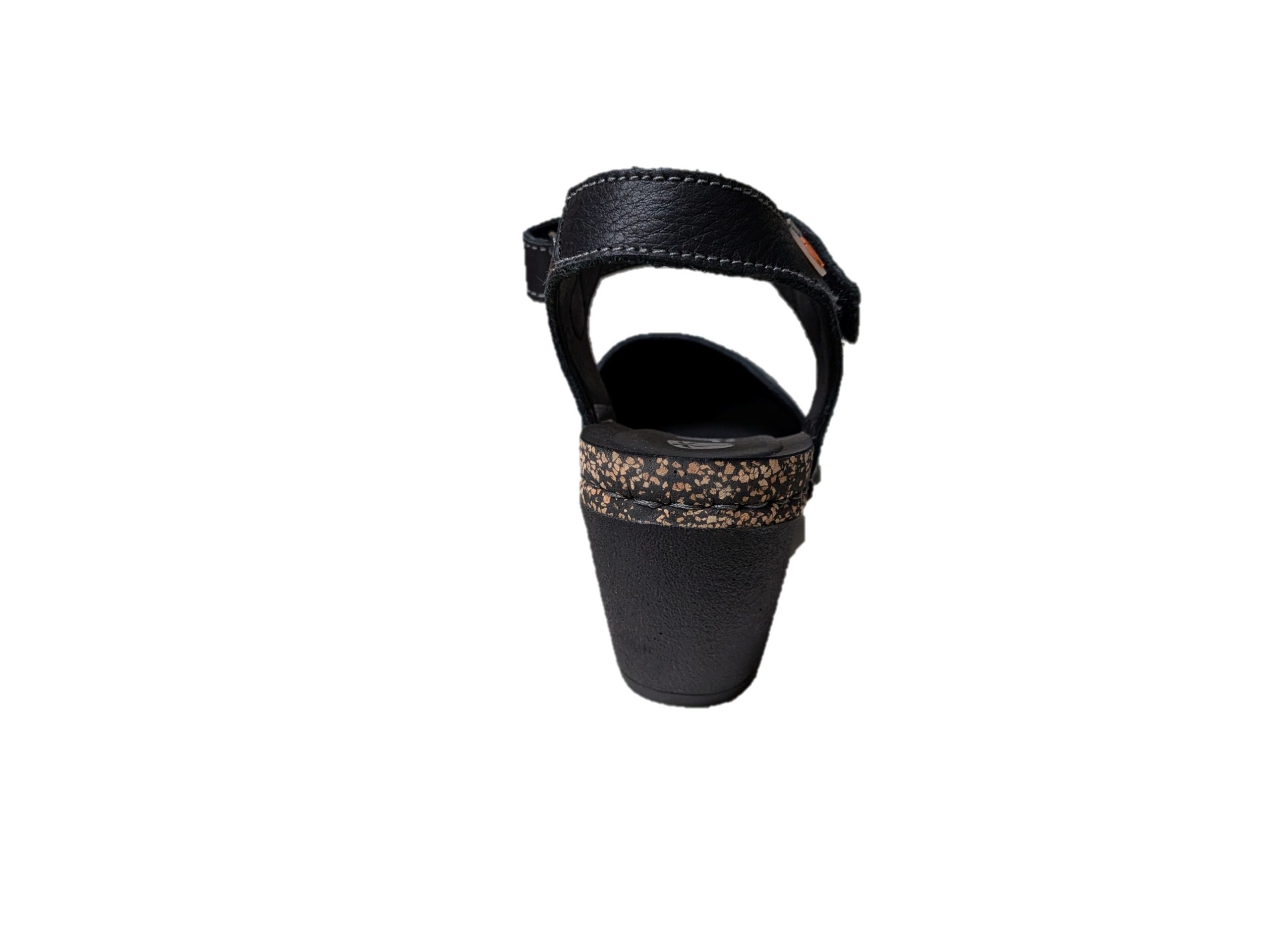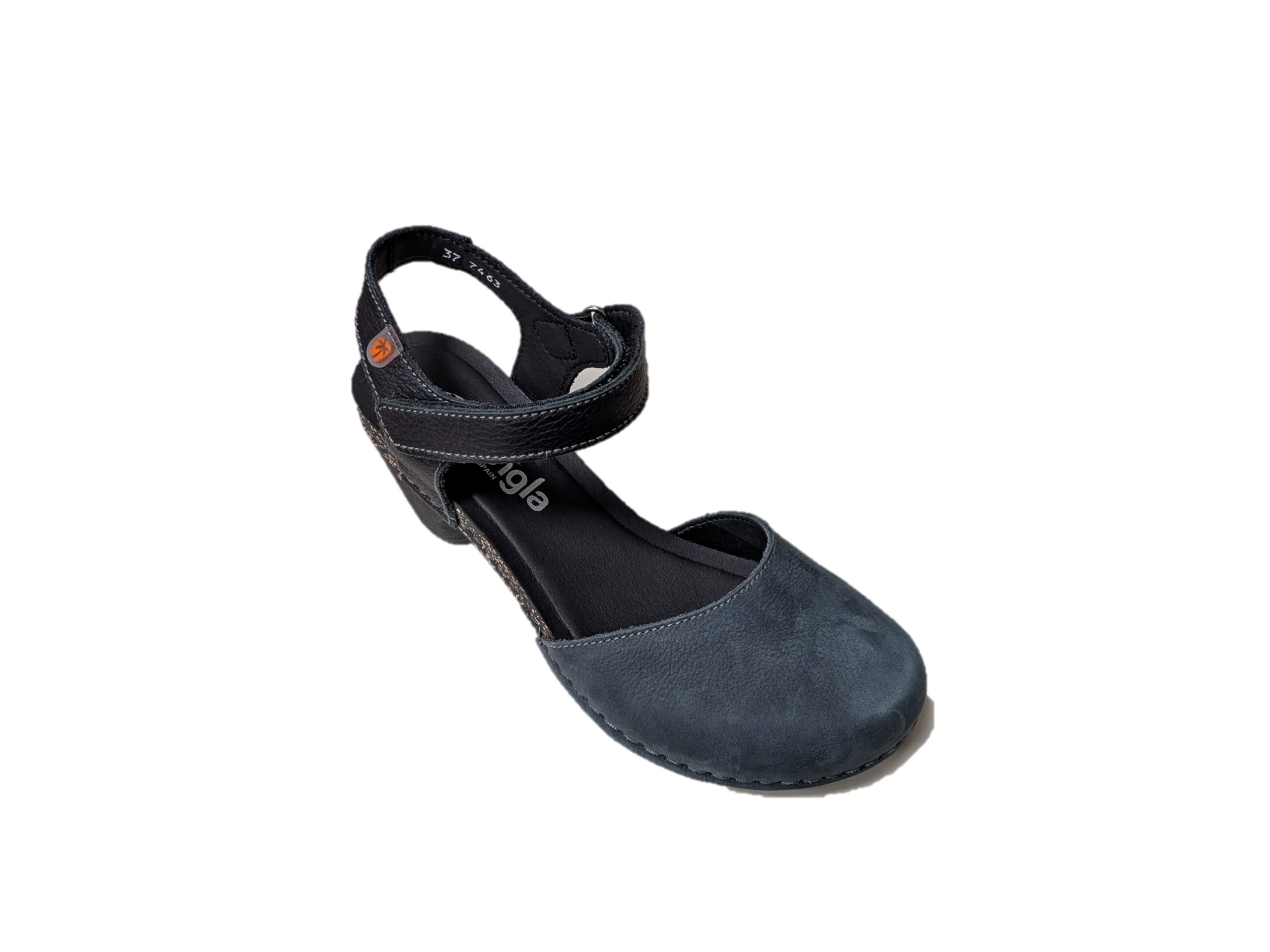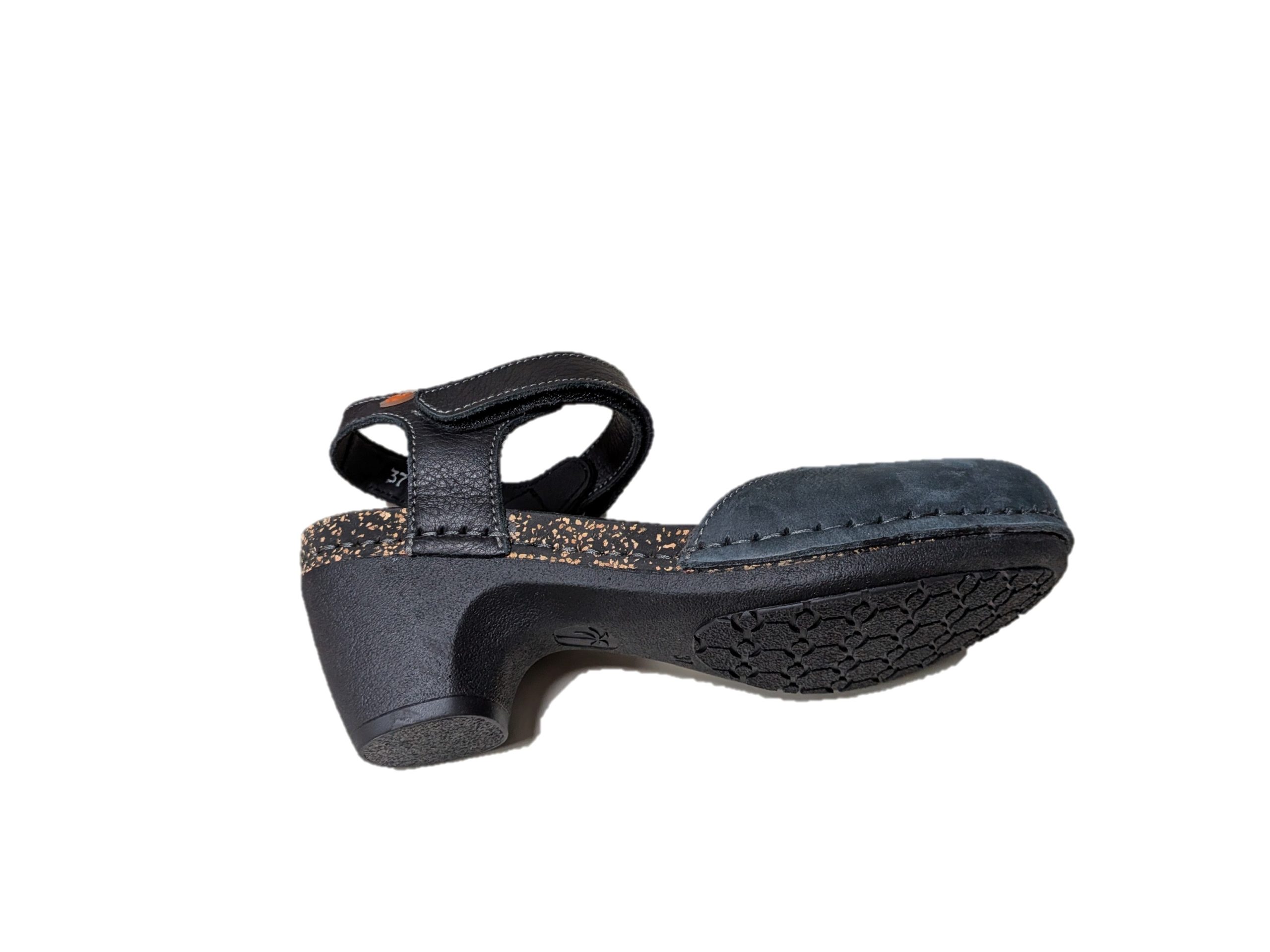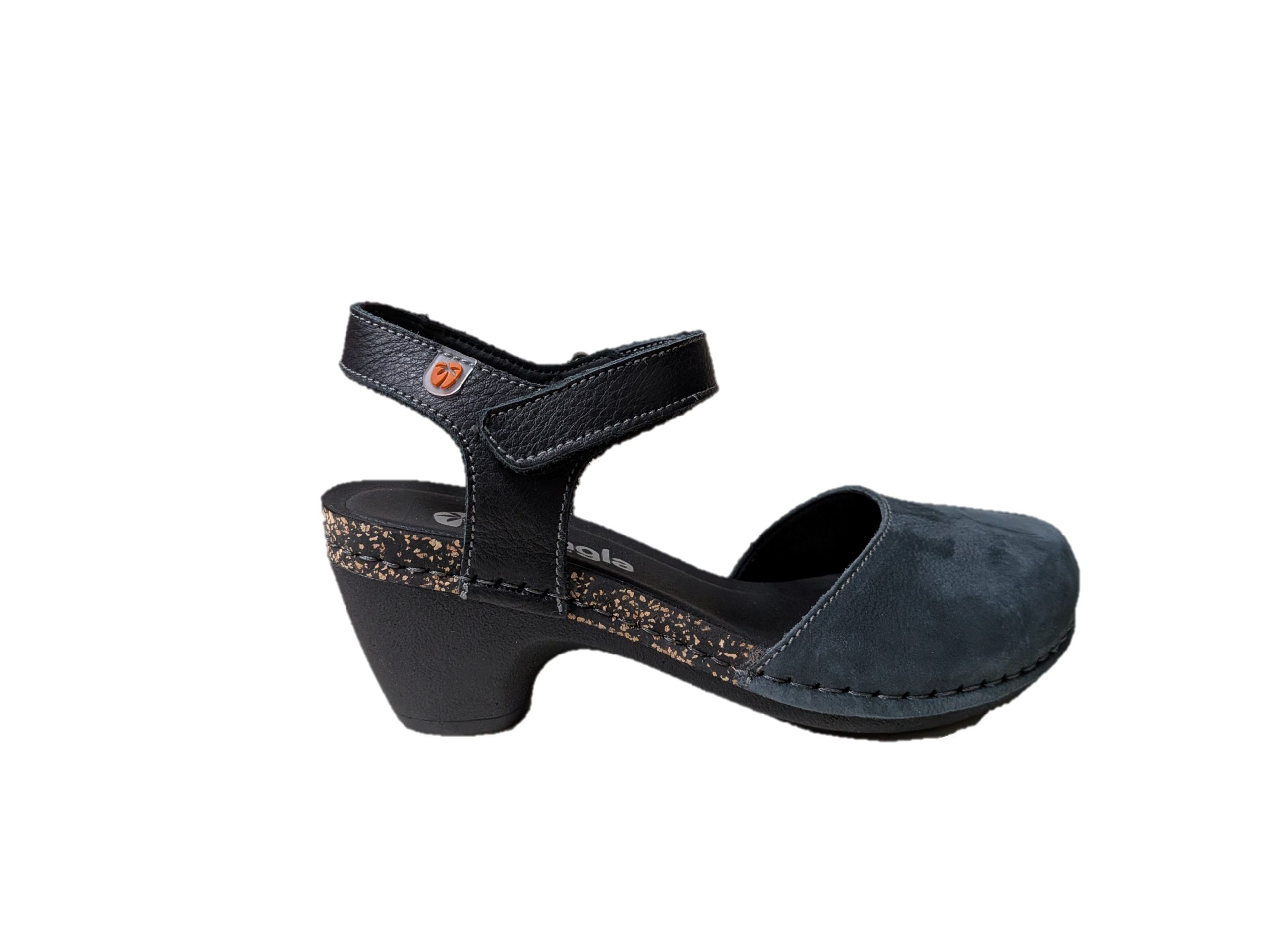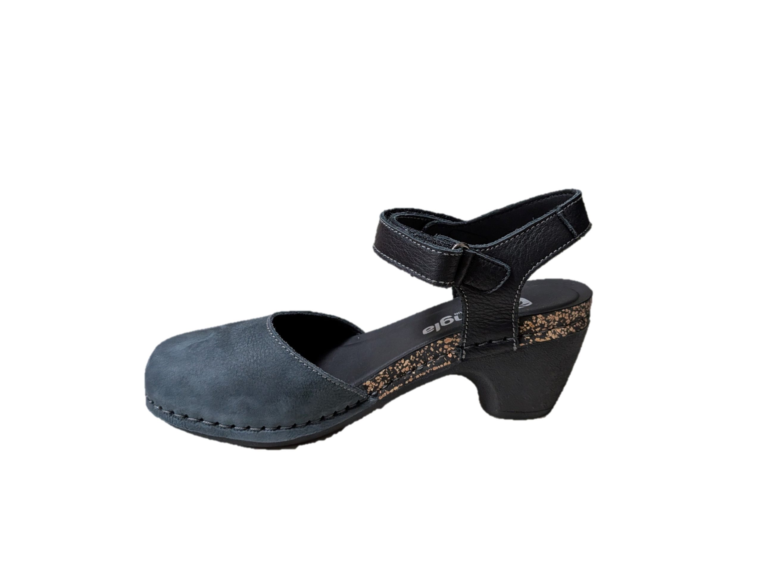 Sandali con punta chiusa in pelle nabuk, tacco 5,5cm, chiusura con velcro, suola in gomma