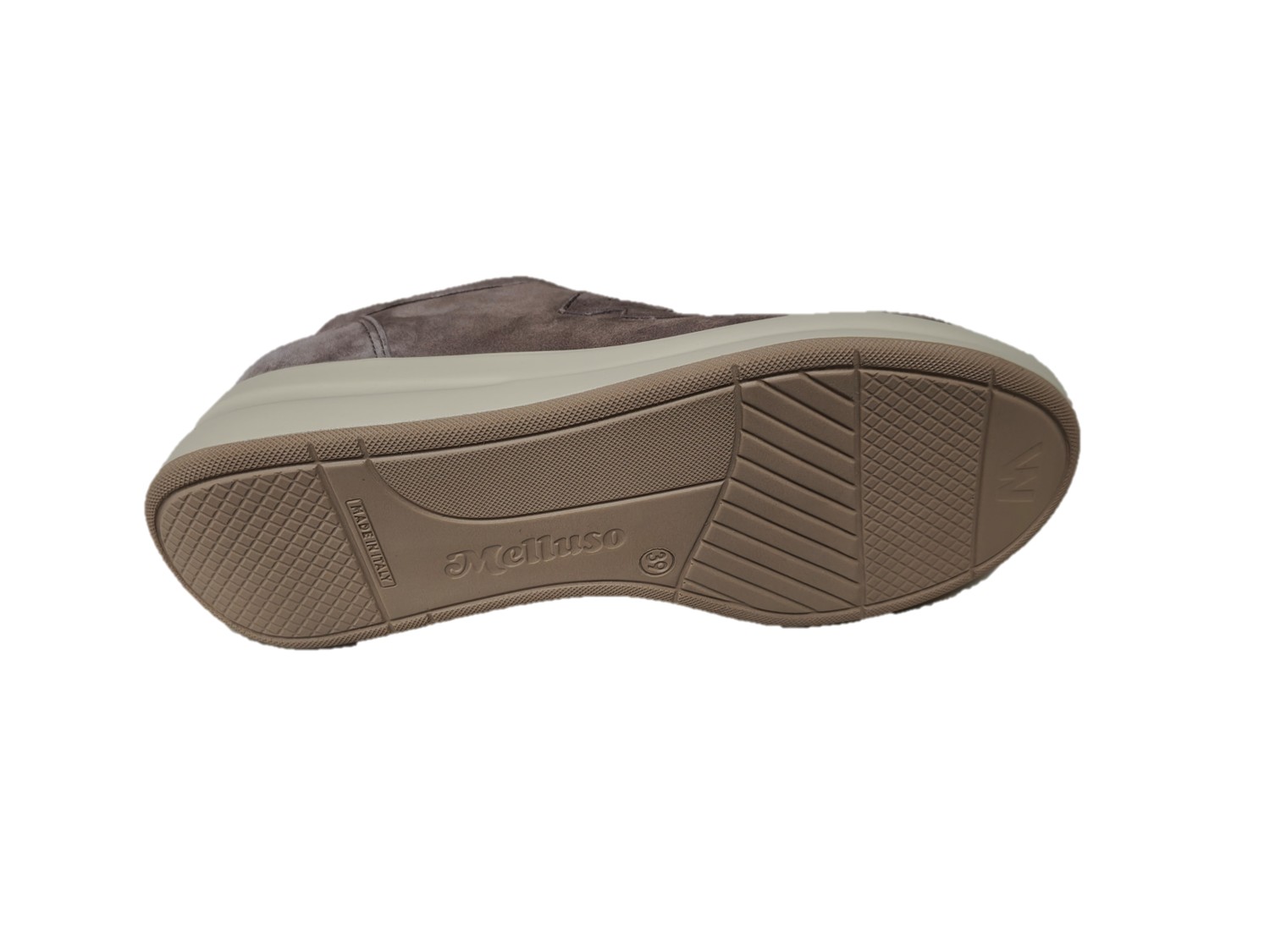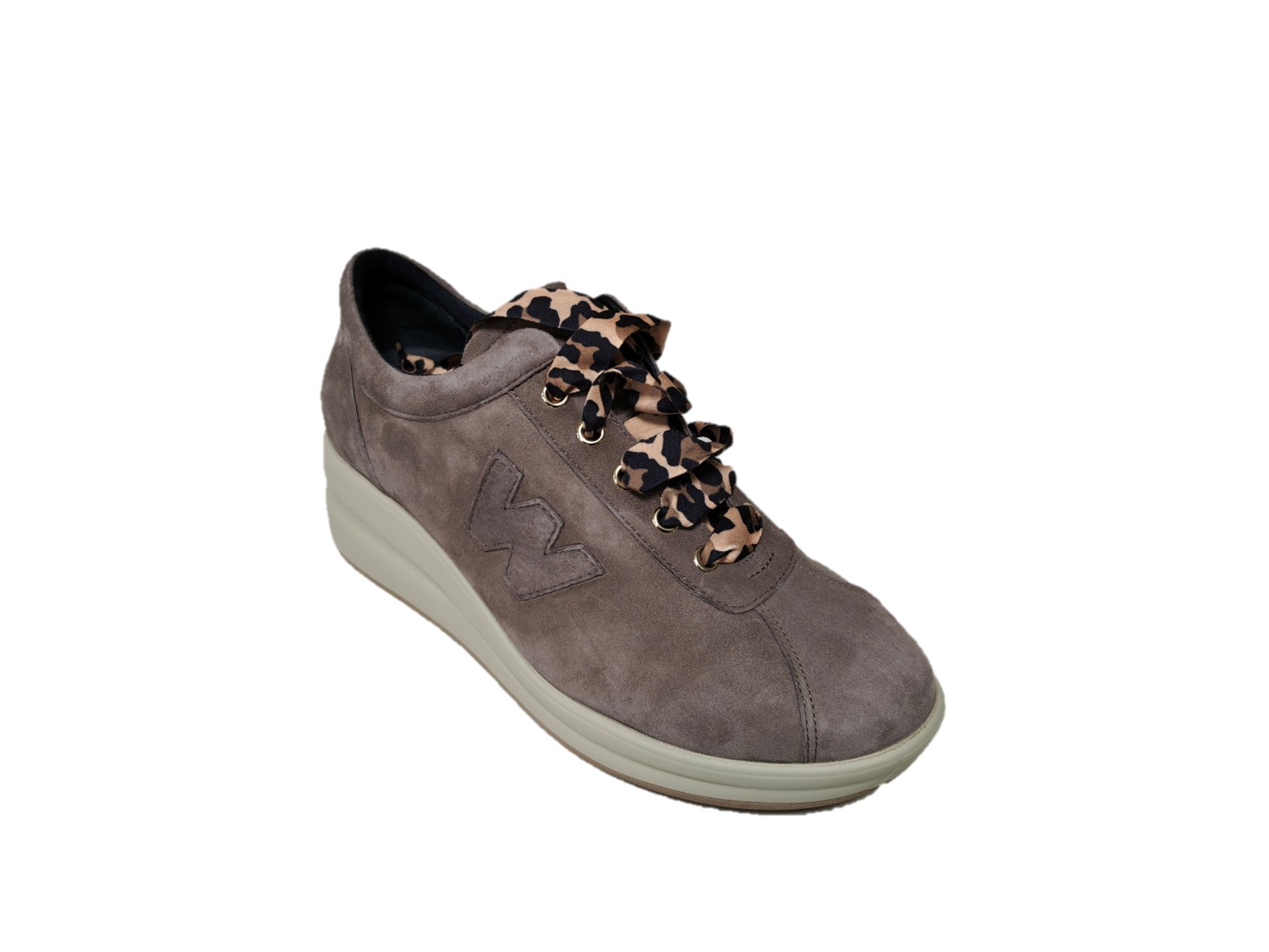 Sneakers in pelle scamosciata colore acero, zeppa di 4cm, suola in gomma