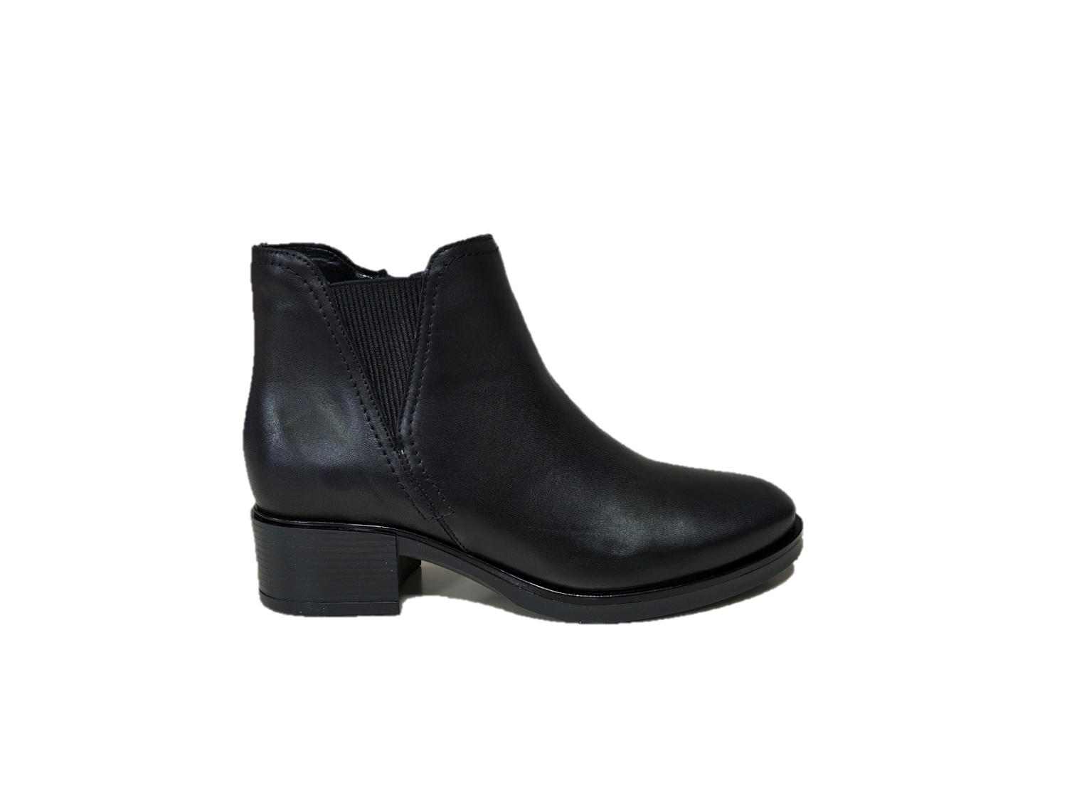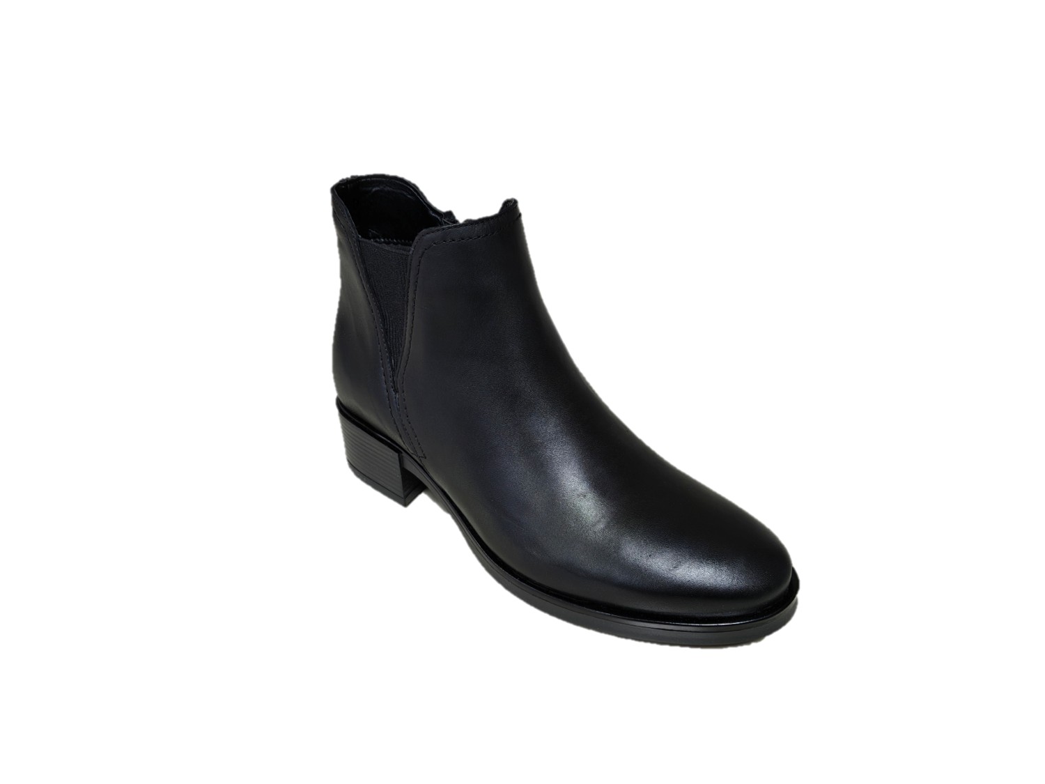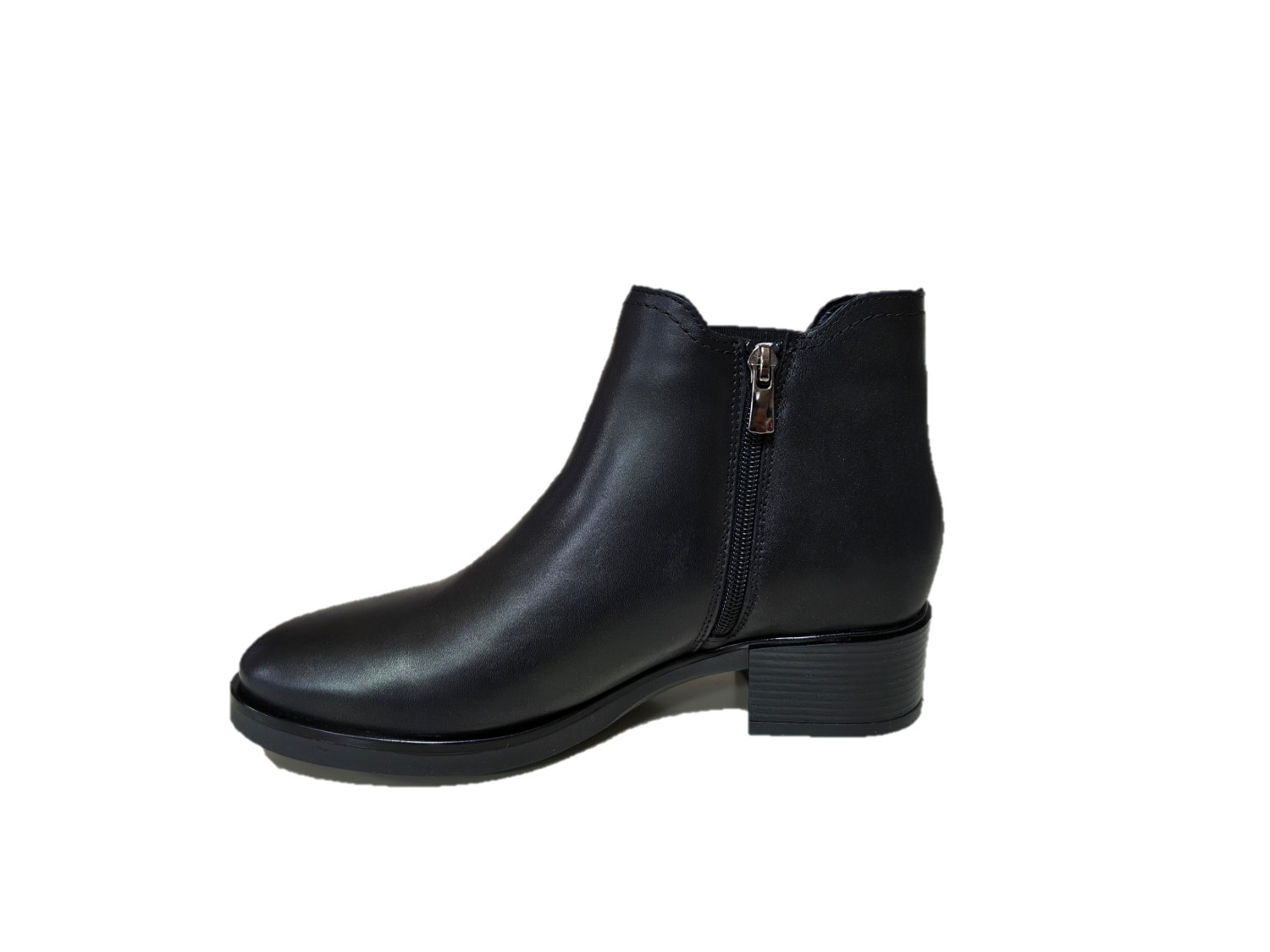 Stivaletti in pelle colore nero, tacco 4cm, suola in gomma, cerniera laterale.