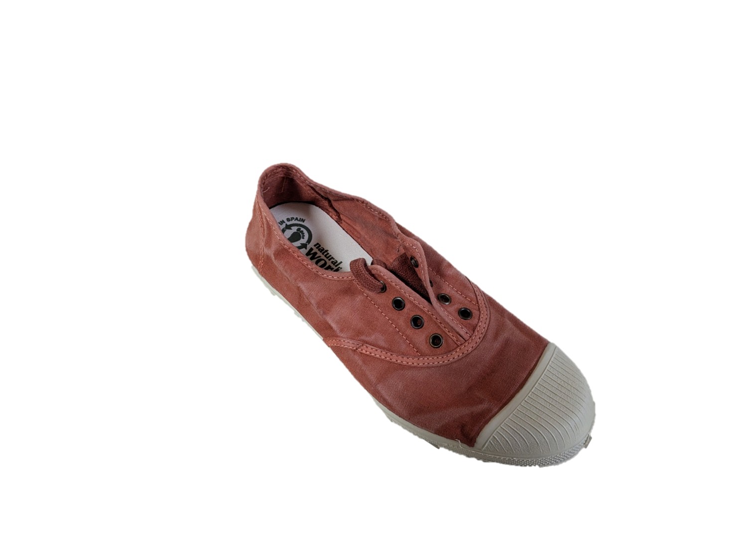 Queste scarpe da ginnastica alla moda sono rinforzate da una punta in gomma, che le rende resistenti per l’uso quotidiano, e la loro suola è in gomma antiscivolo. Con il colore come protagonista, questa calzatura Natural World Eco arriva in una scatola di cartone riciclato, qualcosa di essenziale per chi vuole contribuire positivamente all’ambiente. Includono anche i lacci in modo da poter scegliere come indossarli, con o senza lacci. • Solette rimovibili • Queste scarpe prevedono un processo di lavorazione su un tessuto naturale quindi qualsiasi irregolarità fa parte della sua caratteristica.