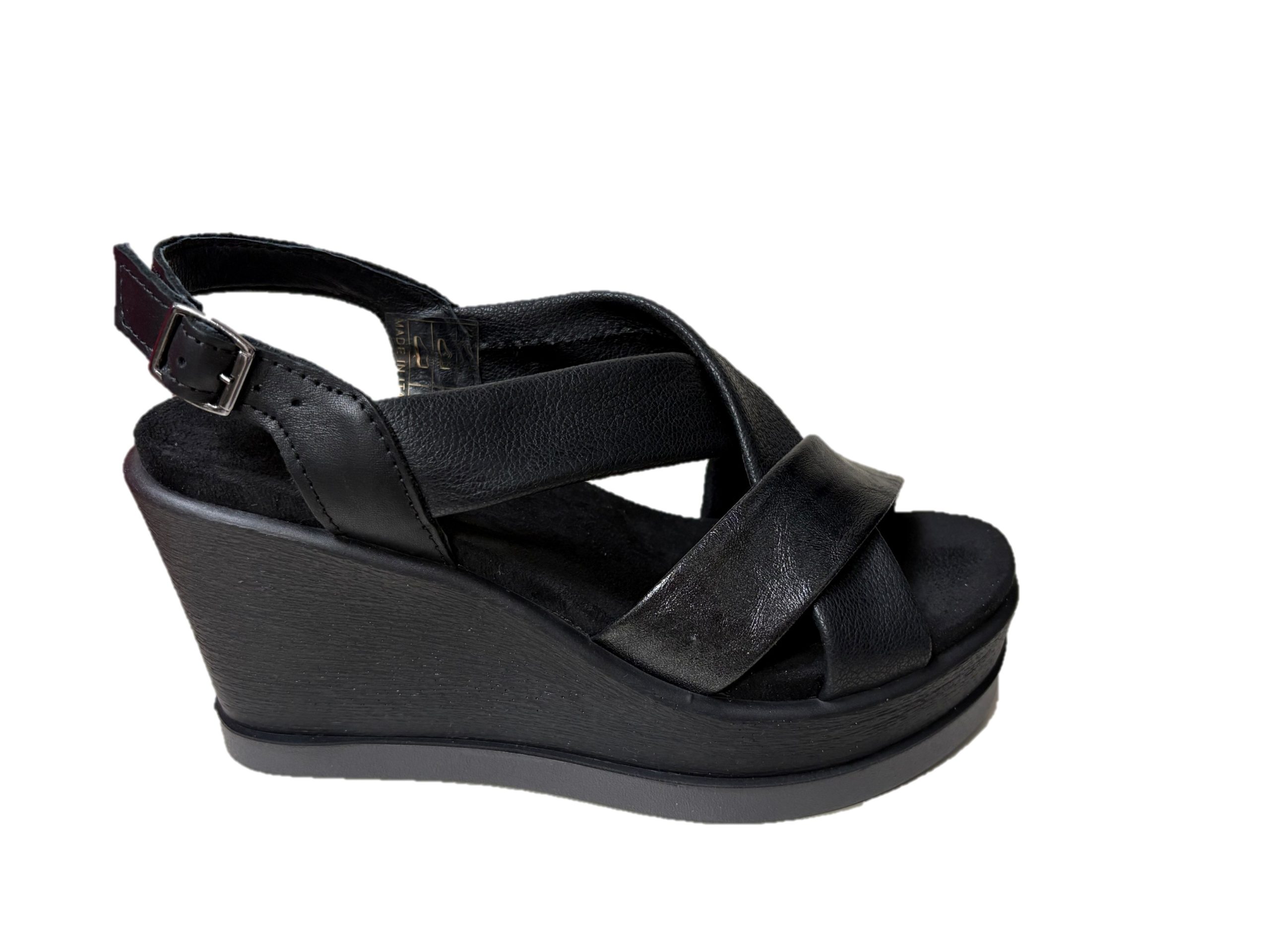 Sandali con zeppa decisi e super versatili. Le morbide fasce incrociate avvolgono il piede con stile, mentre la zeppa, leggerissima, slancia la silhouette e ti fa camminare comoda tutto il giorno.