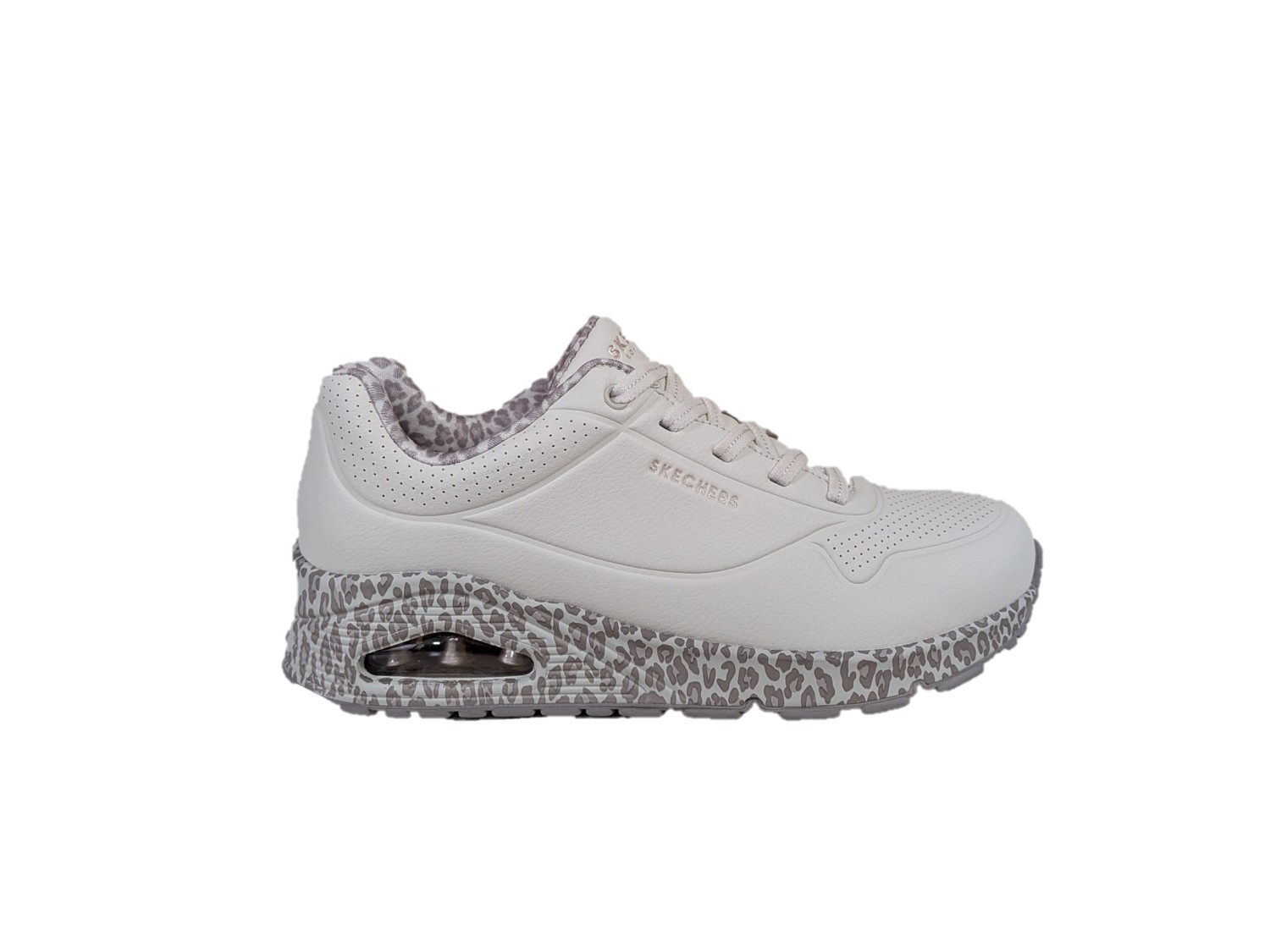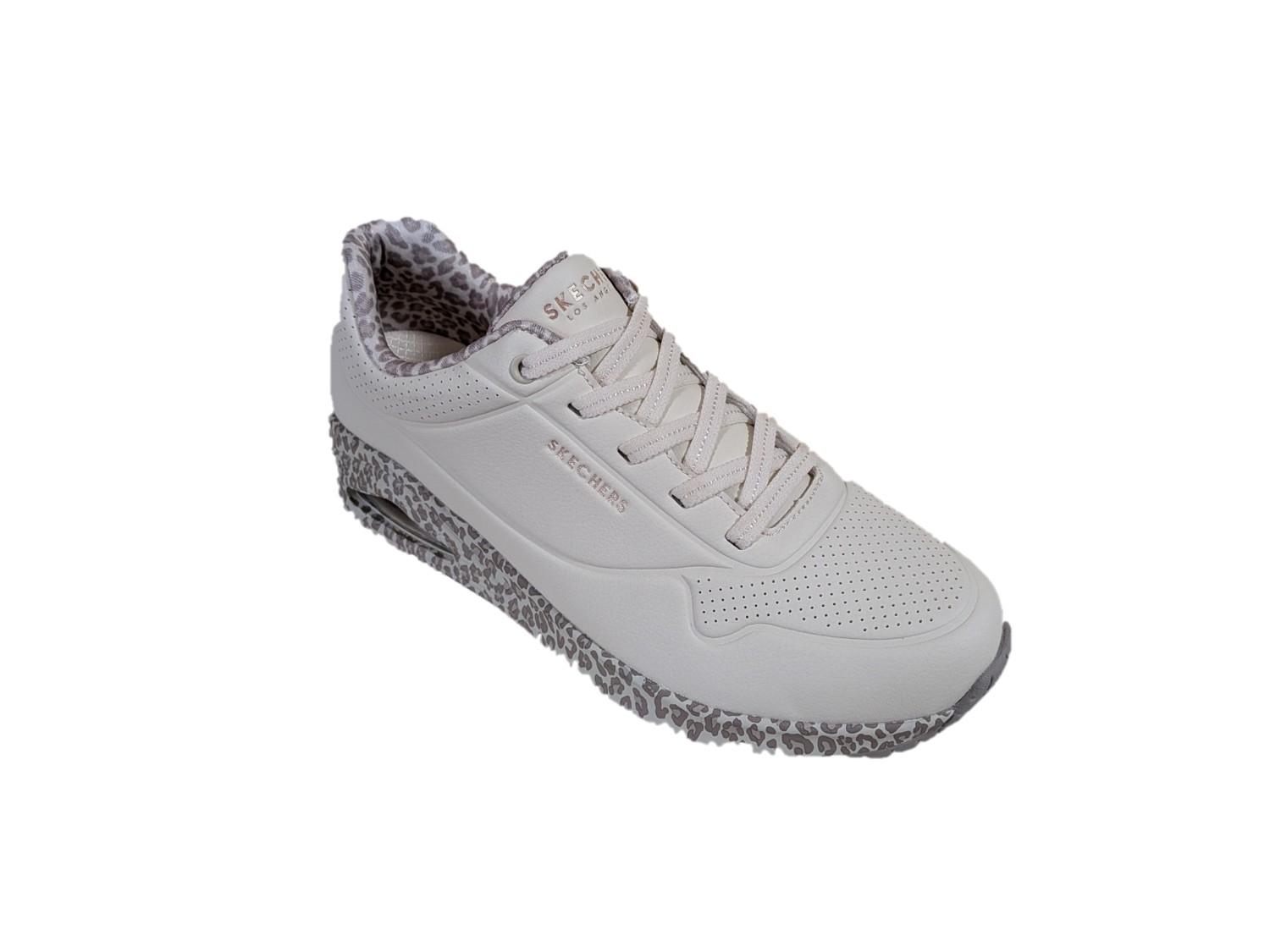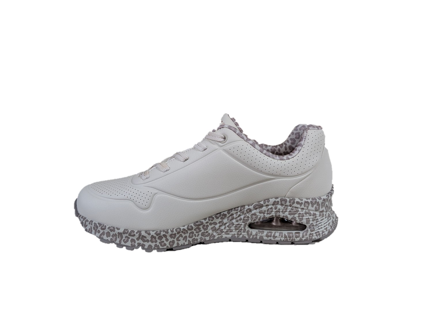 sneakers in materiale sintetico colore white leopard, suola in gomma, sottopiede memory foam