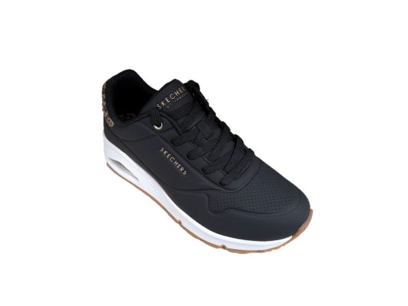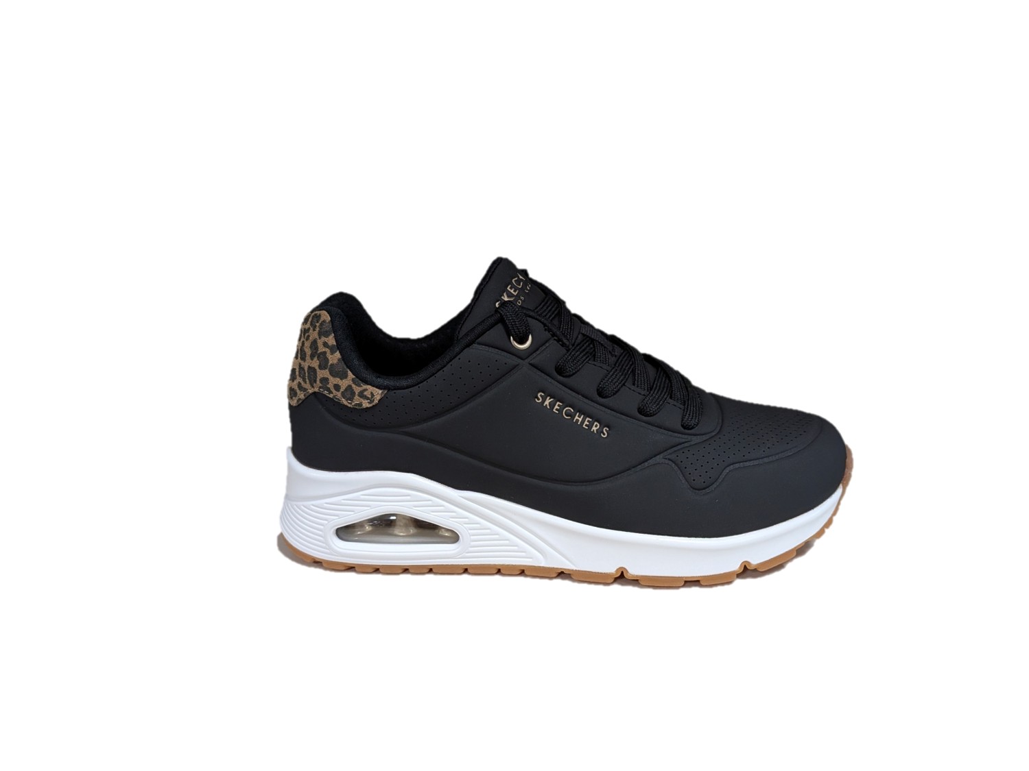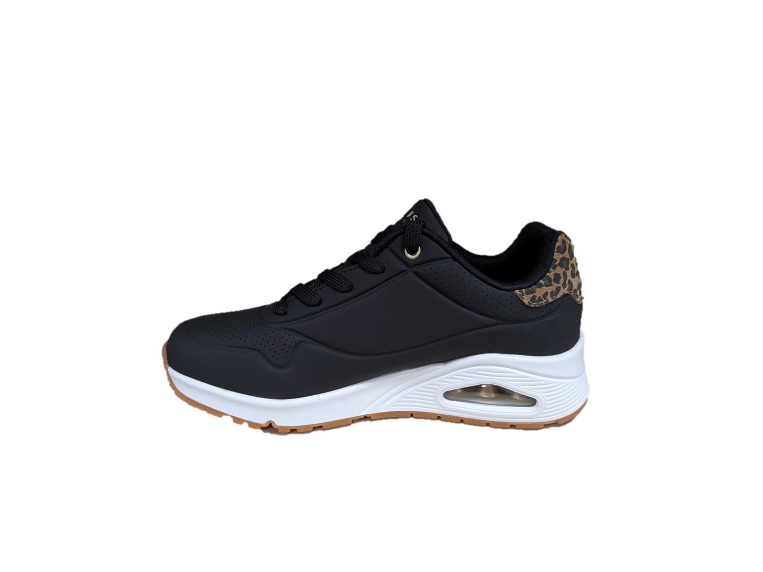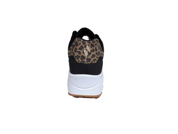 - Tomaia in materiale tecnico allacciata con applicazione a stampa leopardata sul tallone