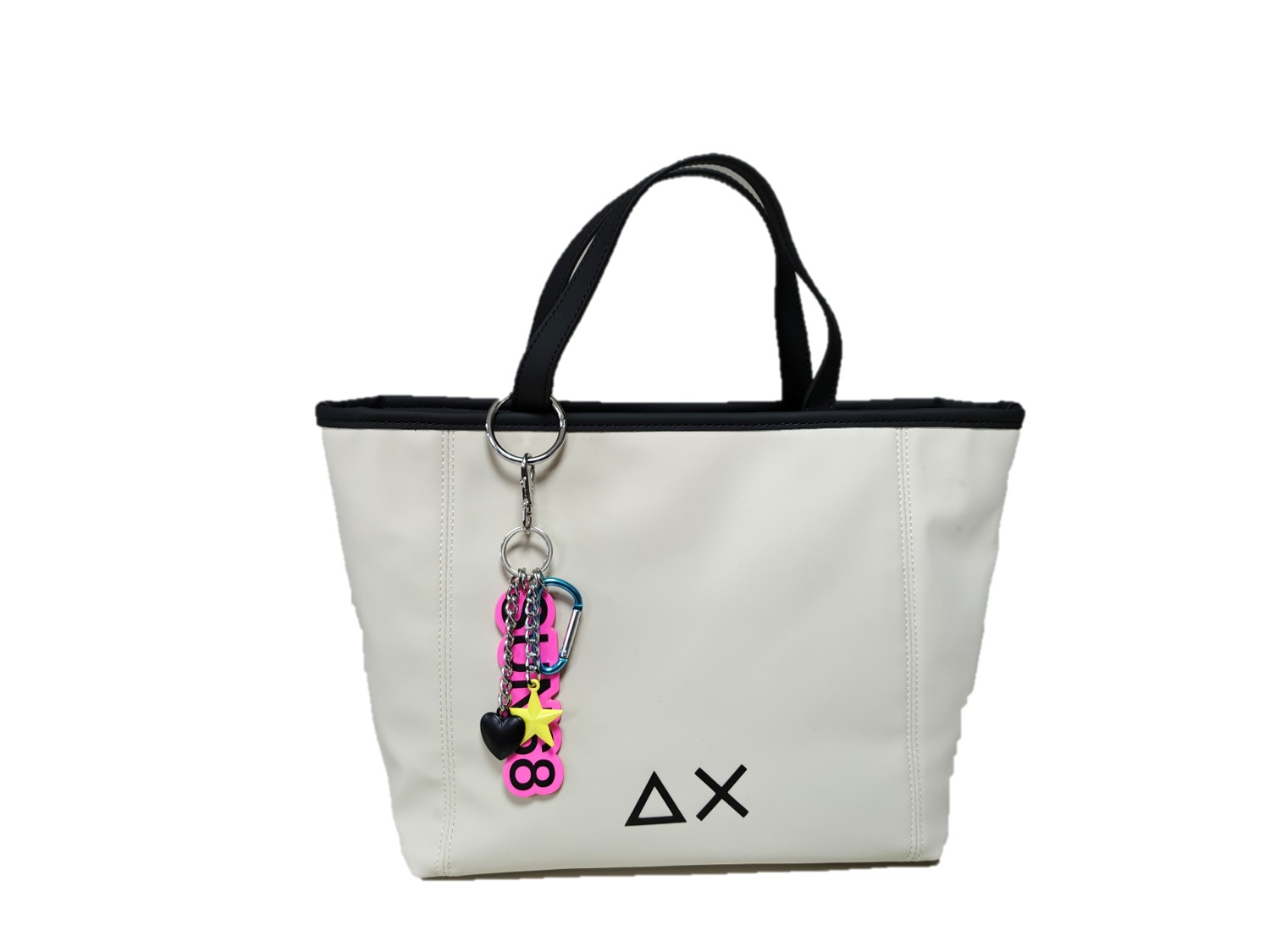 Jacqueline è l’iconica shopping bag SUN68 progettata per la città e il tempo libero. Il suo design small è valorizzato dalla tracolla rimovibile e dai manici comodi per essere portata a mano, sotto il braccio o crossbody. I charms e il maxi logo stampato danno un tocco di brio.